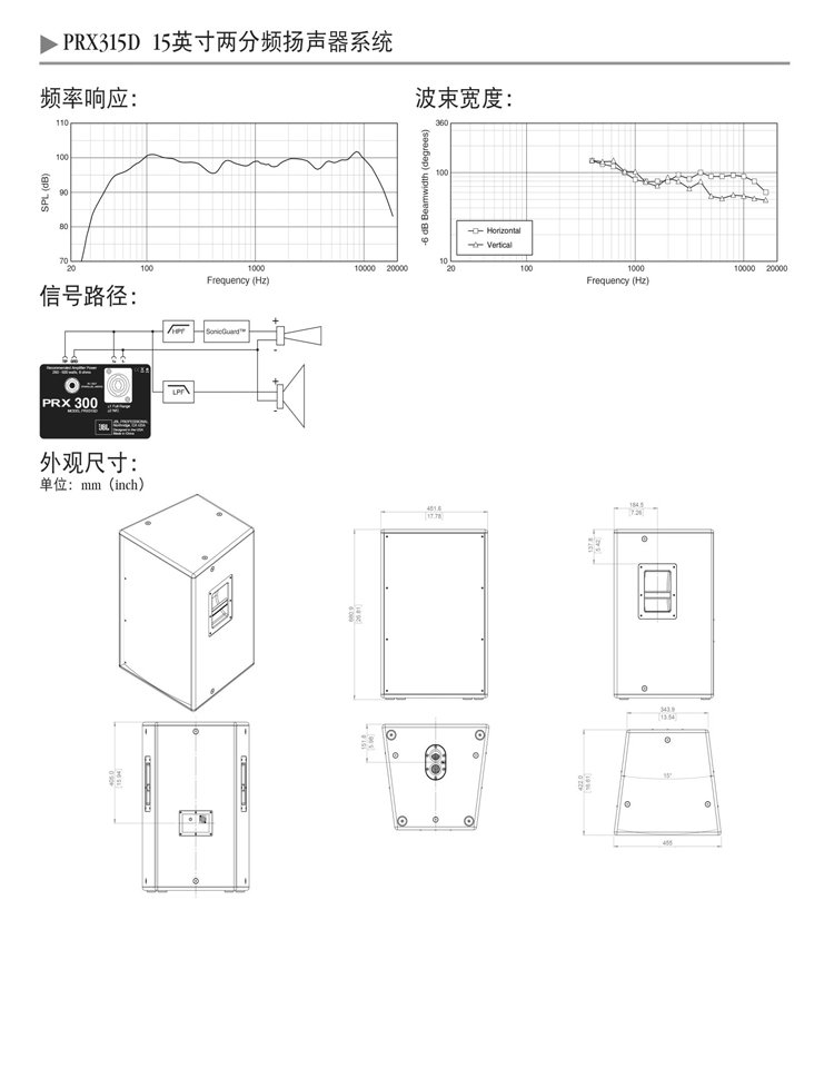 系统类型 | 15”两分频扬声器 | ||