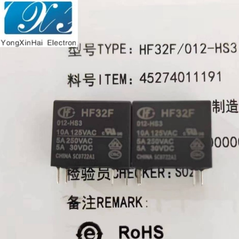 宏发一组敞开四脚小型家电用电磁功率继电器HF32F/012-HS3 PCB安装 封装/规格 | DIP | ||