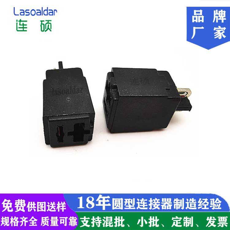 深圳厂家连硕达生产一圆一方两孔芯塑胶连接器01母插头焊线注塑成型式DIN2PIN电源座