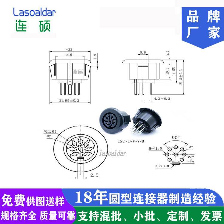 8P卡点圆插座DIN8P8孔手拉手8芯会议模块话筒插座八芯DIND型模块
