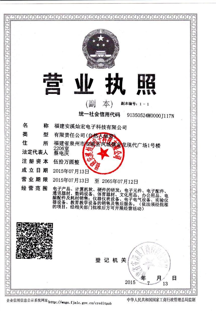 商铺名称:福建安溪灿宏电子科技有限公司