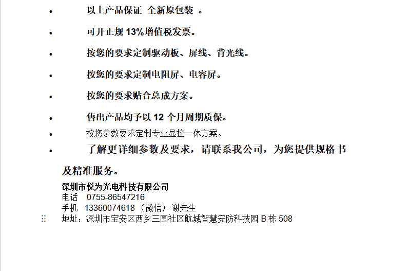 深圳市悦为光电科技有限公司, 专注于显示触控整体方案定制。