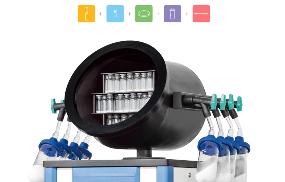 4,多合一冷冻干燥,多个干燥室:冷冻干燥在各种环境下进行,需要对过程进行观察。 新型多功能干燥室可适用于各种容器,如“血清瓶、安瓿、完整烧瓶、培养皿和/或散装托盘”。因此可以实现多种应用并且装卸方便。 ?易于观察干燥过程,并且可以在过程中添加冷冻干燥。