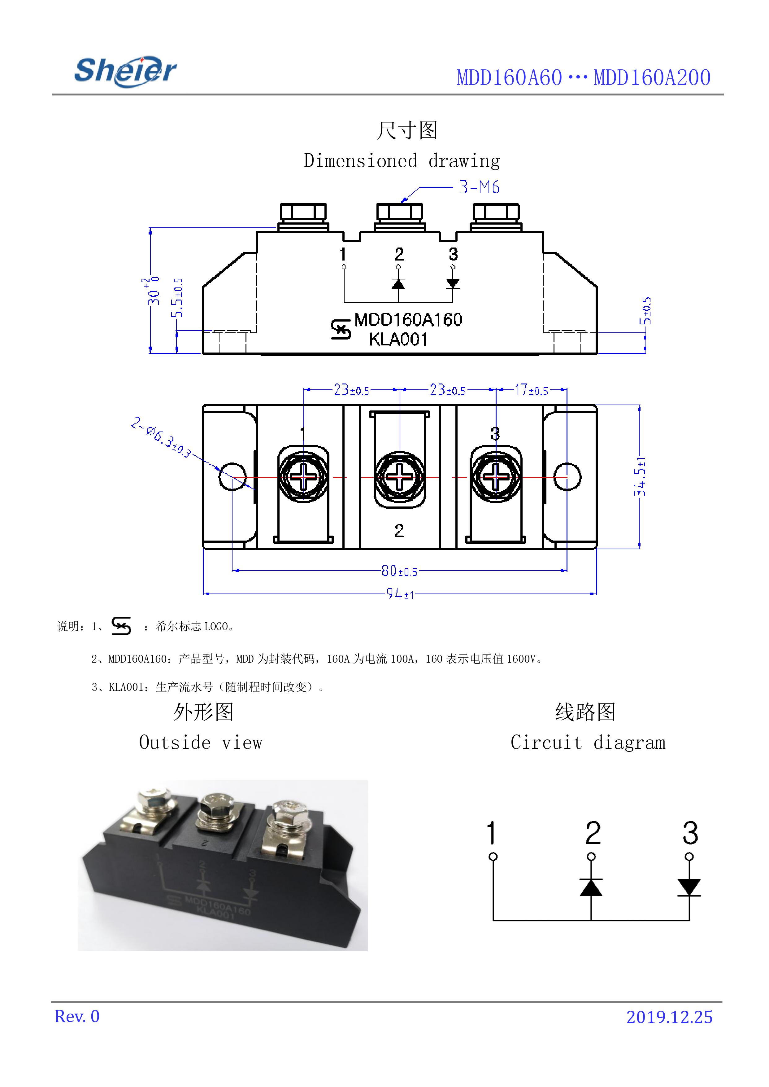 “页面标价非成交价,请联系详询报价”? ?sheier/希尔 全新原厂原装大功率三相整流桥模块:MDD160A160;正向电流:160A;反向峰值电压:1600V;正向压降:1.3V;浪涌电流:5500A;绝缘电压:3000V;尺寸体积:94*35*30cm;封装方式:大模块。