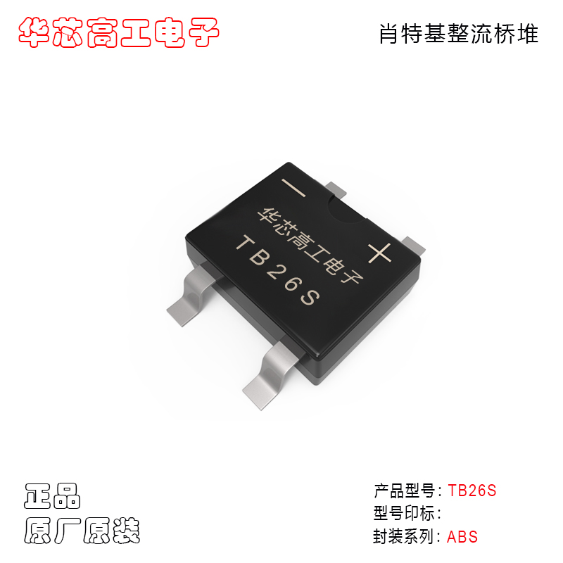 JINGDAO/晶导微 原厂原装全新正品贴片中低压超高频肖特基整流桥堆:TB220S、TB215S、TB210S、TB28S、TB26S、TB24S;反向恢复时间:5ns;最大正向平均整流电流IF:2A;最大正向峰值抗浪涌电流IFSM:40A~50A;最大反向峰值电压VRRM:200V~40V;正向管压降VF:0.55V~0.95V;反向漏电流IR:300ua;工作储存芯片结温:-55℃~150℃;安装封装方式:TBS-4 : 5.2*6.4*1.5mm。