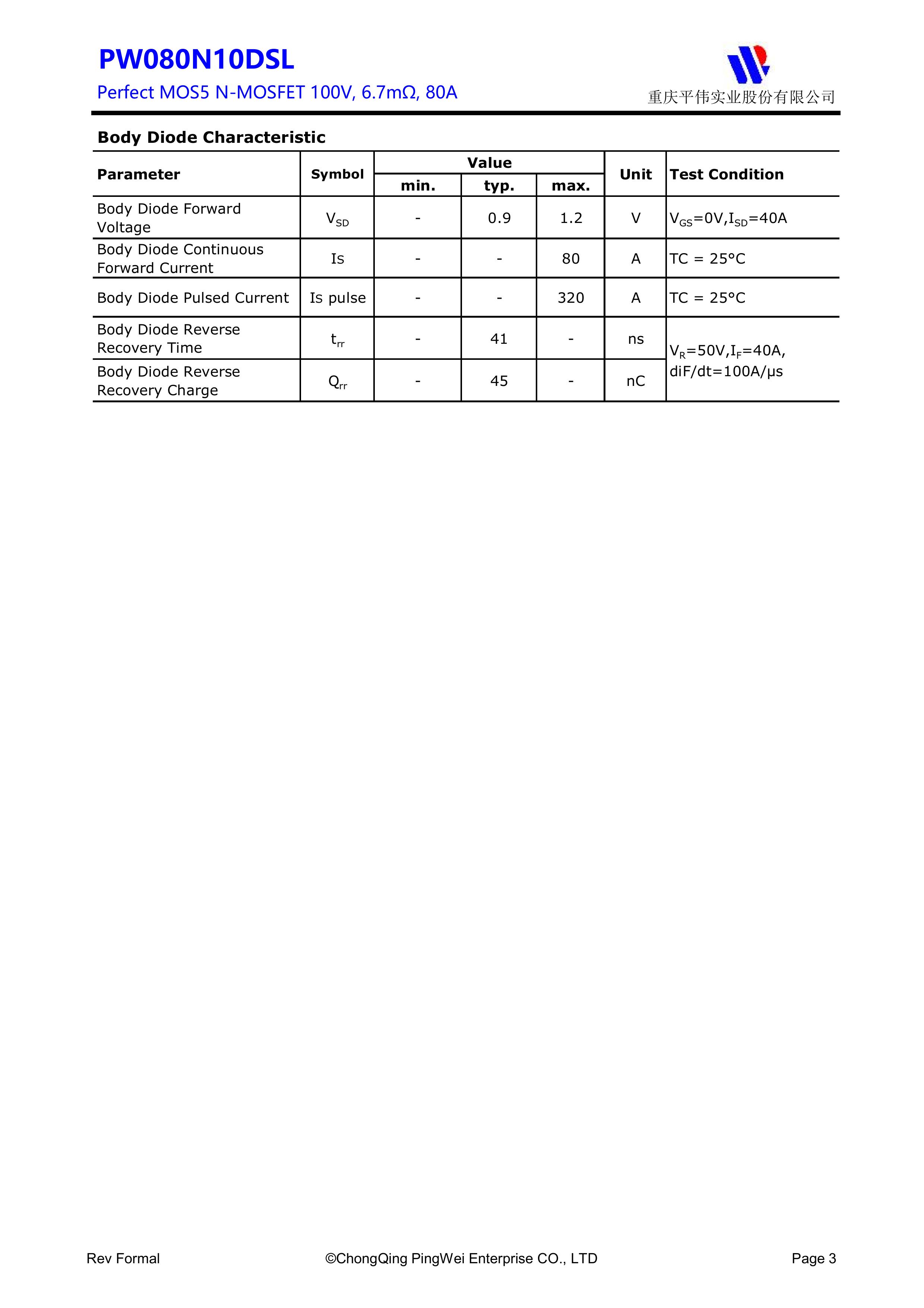 "页面标价非成交价,请联系详询报价” PY/重庆平伟实业 全新原厂原装中低压高频功率控制电子开关管 N型沟道场效应管100V、80A、6.7mΩ、N-Channel、小体插件式中低压MOSFET:PW080N10DSL;电压Vds:100V;电流Id:80A;内阻Rds(on):6.7mΩ;封装方式:TO-251-3L;最小包装数量:4000pcs/盒-管装。