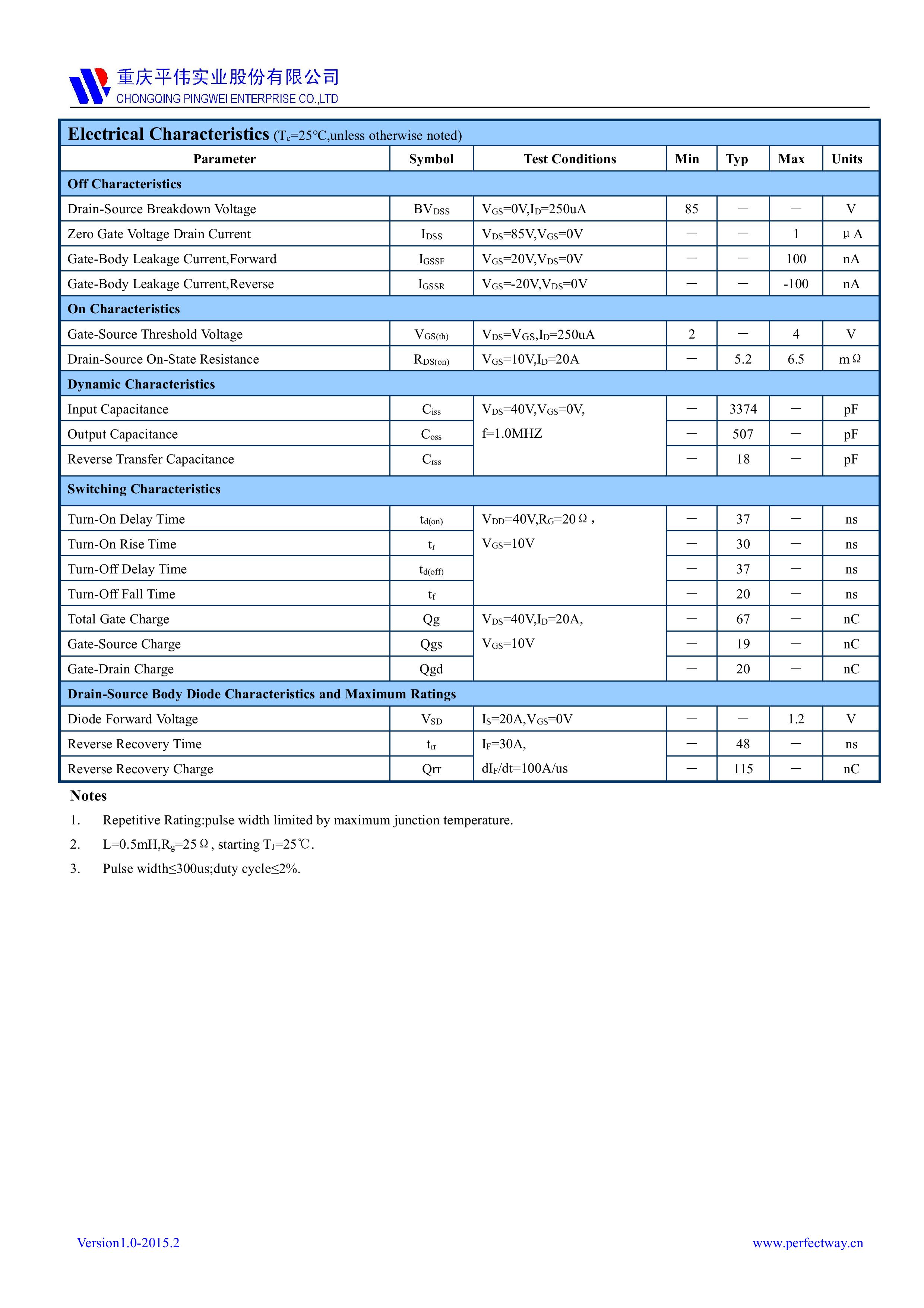 "页面标价非成交价,请联系详询报价” PY/重庆平伟实业 全新原厂原装中低压高频功率控制电子开关管 N型沟道场效应管85V、120A、4.8mΩ、N-Channel、贴片式中低压MOSFET:PW065N08GS;电压Vds:85V;电流Id:120A;内阻Rds(on):4.8mΩ;封装方式:TO-252-2L;最小包装数量:2500pcs/盘-编带。
