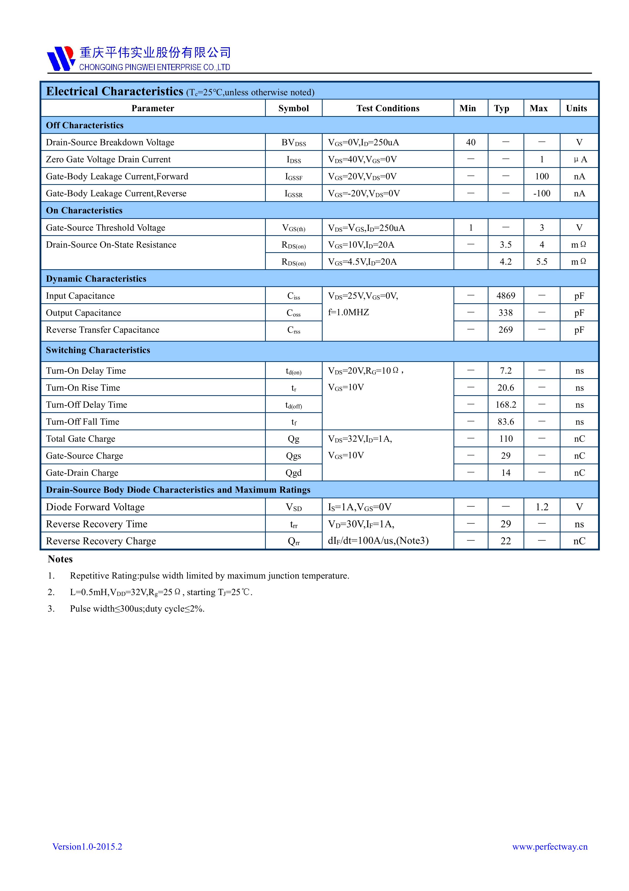 PW040N04GL 大芯片中低电压大电流低内阻低漏电的分立式功率整流晶体开关管。本品采用内置大尺寸芯片,贴片式封装,,具有适应中低电压低内阻损耗高频高效恢复等电气特性特点。通用于电源、小家电、锂电池、马达电机、电动工具、无人机、电器、适配器、充电器、逆变器、充电桩、特种电源、高频电源、风光储新能源、医疗设备、工业工控等产品电路作电子开关、控制、整流、放大、钳位、防反接、防逆回流等作用。