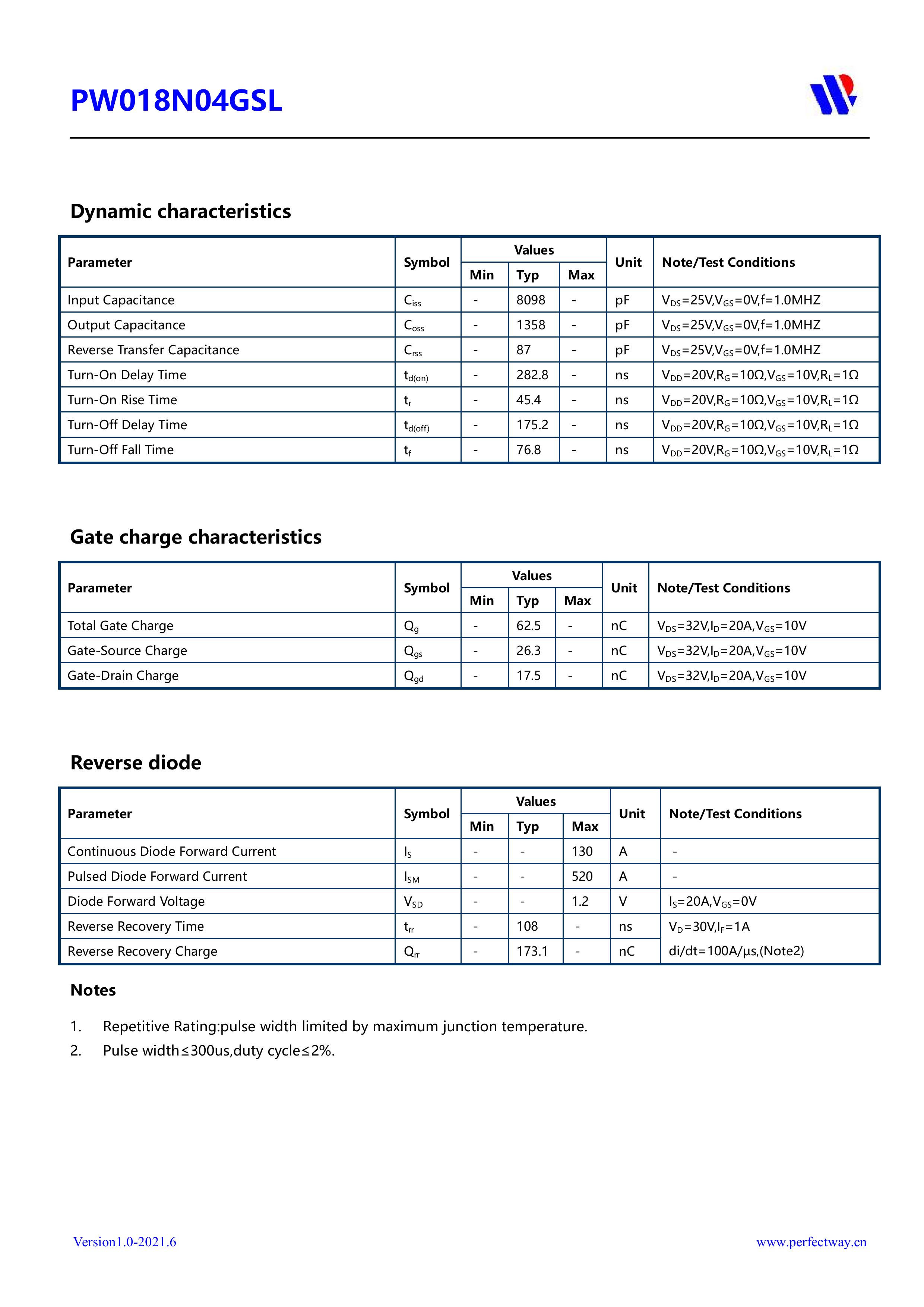 PW018N04GSL 大芯片中低电压大电流低内阻低漏电的分立式功率整流晶体开关管。本品采用内置大尺寸芯片,贴片式封装,,具有适应中低电压低内阻损耗高频高效恢复等电气特性特点。通用于电源、小家电、锂电池、马达电机、电动工具、无人机、电器、适配器、充电器、逆变器、充电桩、特种电源、高频电源、风光储新能源、医疗设备、工业工控等产品电路作电子开关、控制、整流、放大、钳位、防反接、防逆回流等作用。
