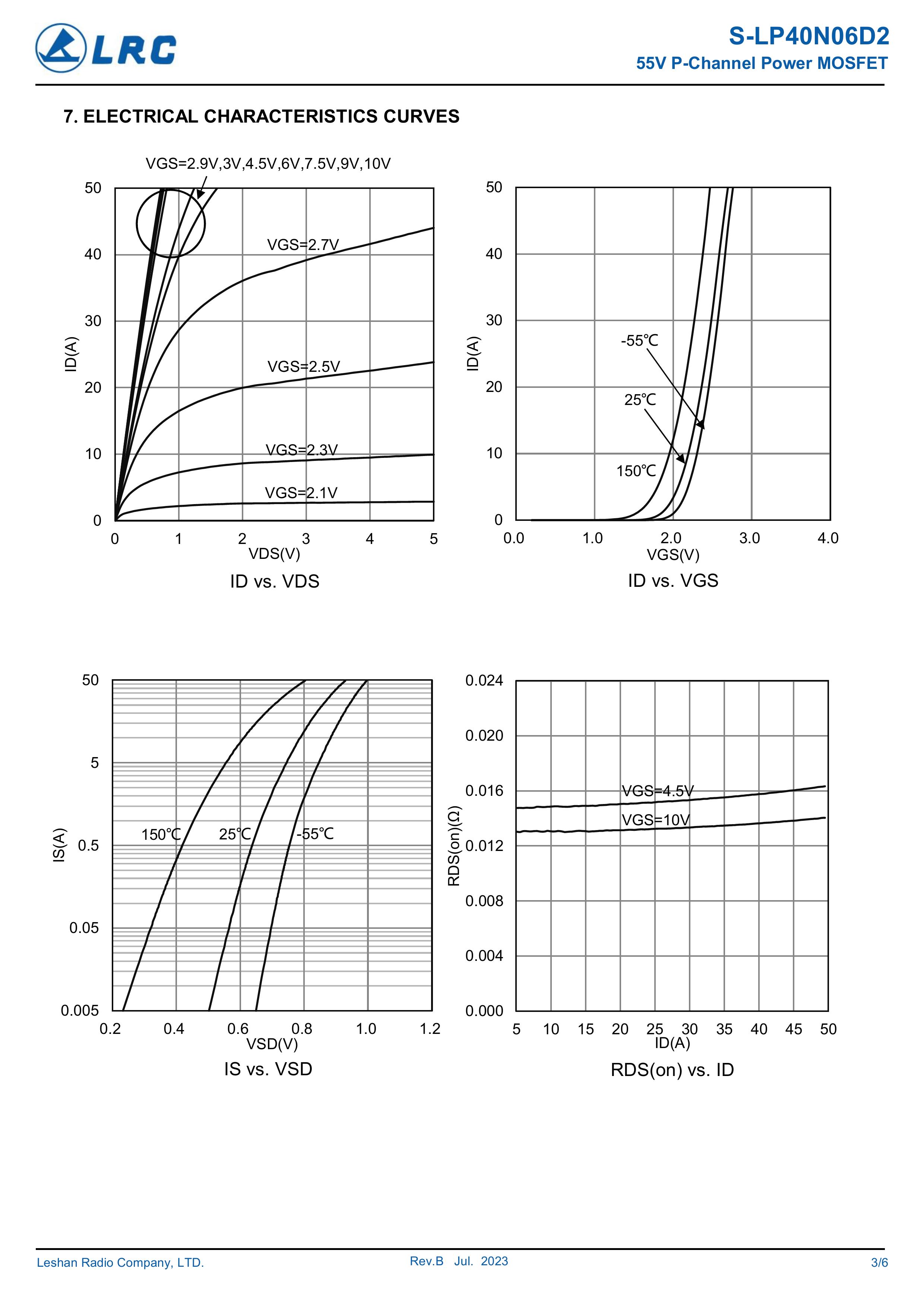 LRC/乐山无线电 S-LP40N06D2 全新原厂原装中低压高频功率控制电子开关管,车规级P型沟道场效应管-55V、-40A、13mΩ、P-Channel、贴片式中低压MOSFET:S-LP40N06D2/P40N06。Vds电压:-55V;Id电流:-40A;Rds(on)内阻:13mΩ;封装方式:TO-252-2L;最小包装数量:2500pcs/盘-编带。