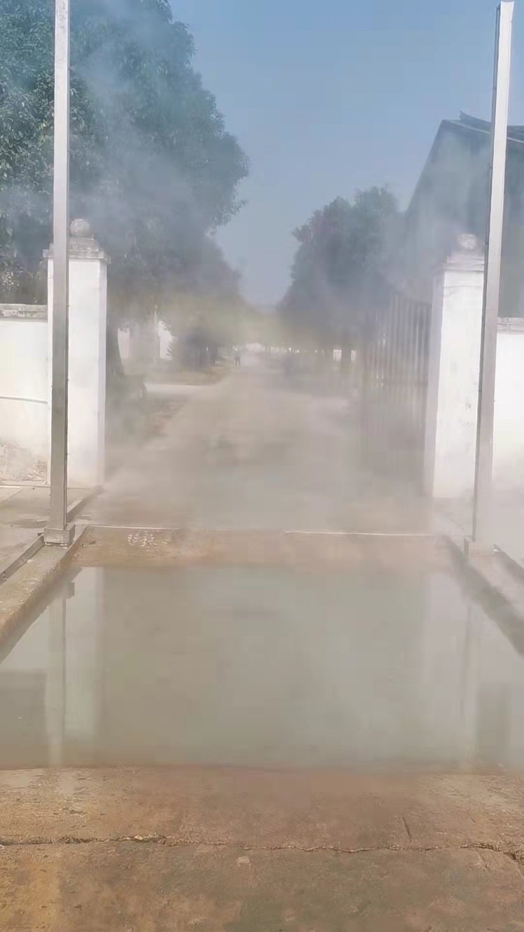 3、多方位消毒:左右不锈钢立柱相对喷雾消毒,喷射距离2-2.5米。减速带内设5个向上喷头,使消毒达到立体交叉多方位,无消毒盲区。