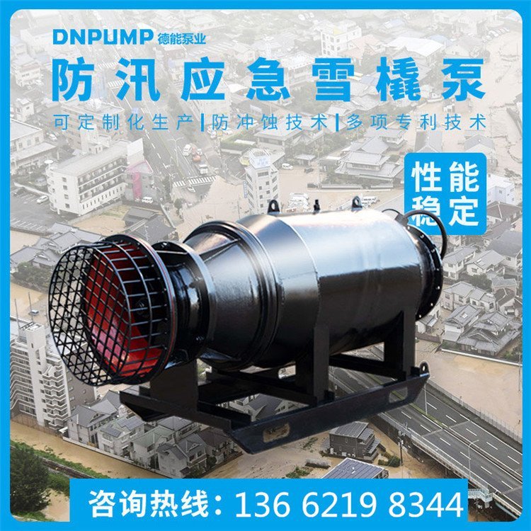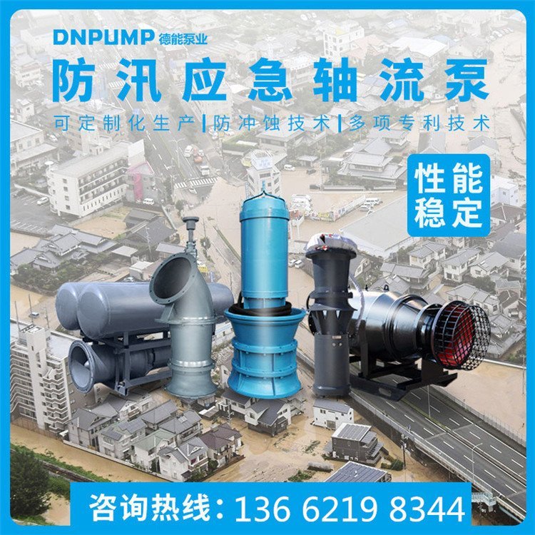 防汛应急排涝潜水轴流泵,流量大、运行稳定可靠、高效节能,适应市场需求,可以用于填海排水、水池河道排水、防洪排涝、污水处理、泵站水处理,
