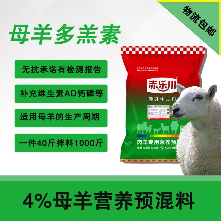 繁殖母羊产前产后补充钙磷维生素微量元素饲料预混料羔多旺