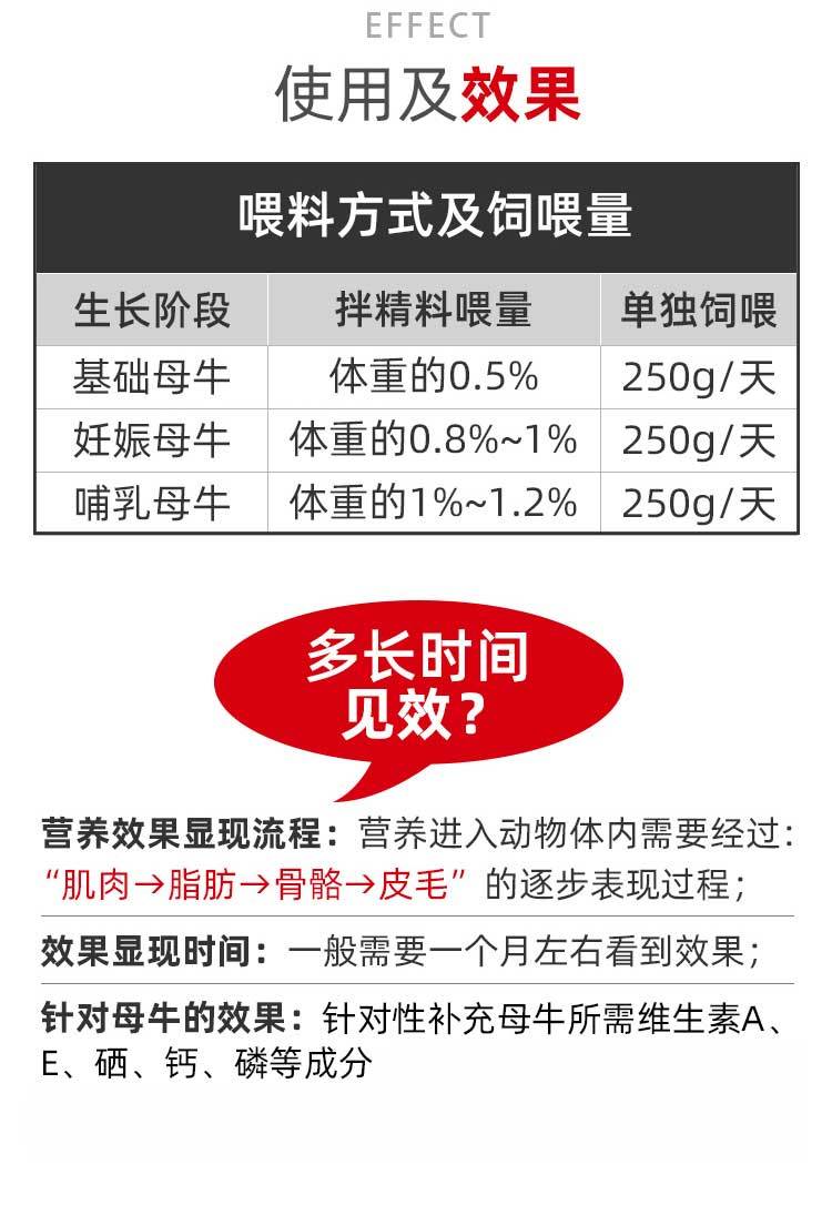 适合动物 | 基础母牛、怀孕母牛、母乳期、种公牛 | ||