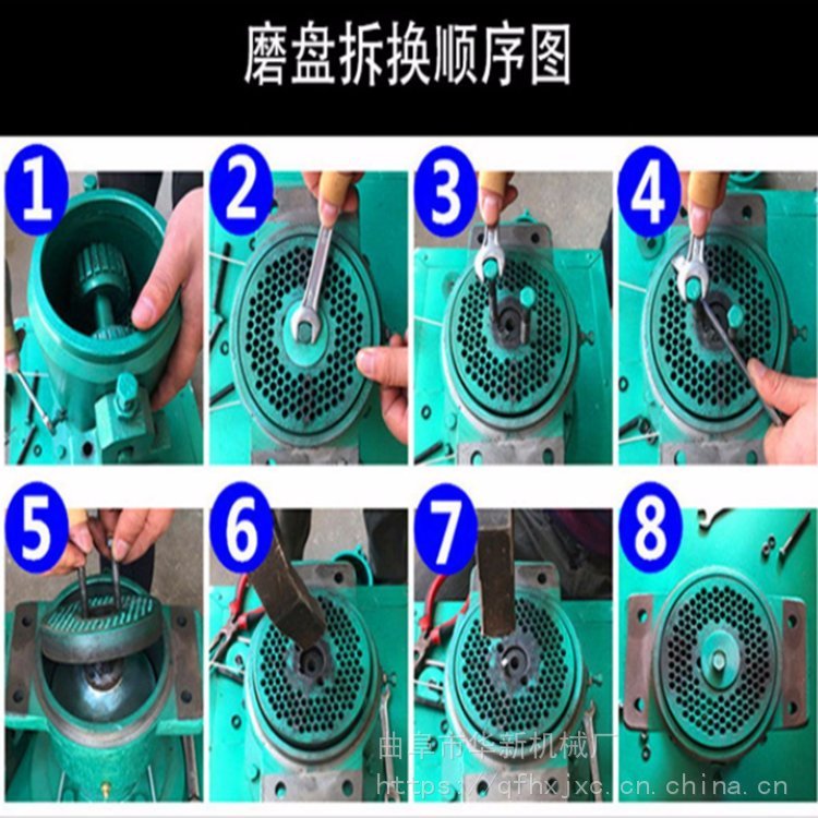 6、停机前先停止进料,待机械内剩余物料加工完毕后在停机,短时间内不必清理,再次使用可直接加入混合饲料,如长时间停机应清模板孔内余料,并作防锈处理。