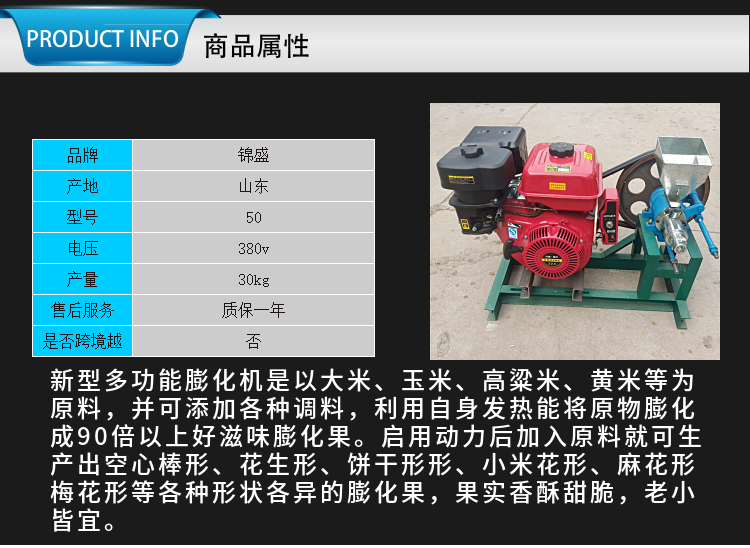 锦盛牌休闲食品膨化机电启动五谷杂粮爆米花机