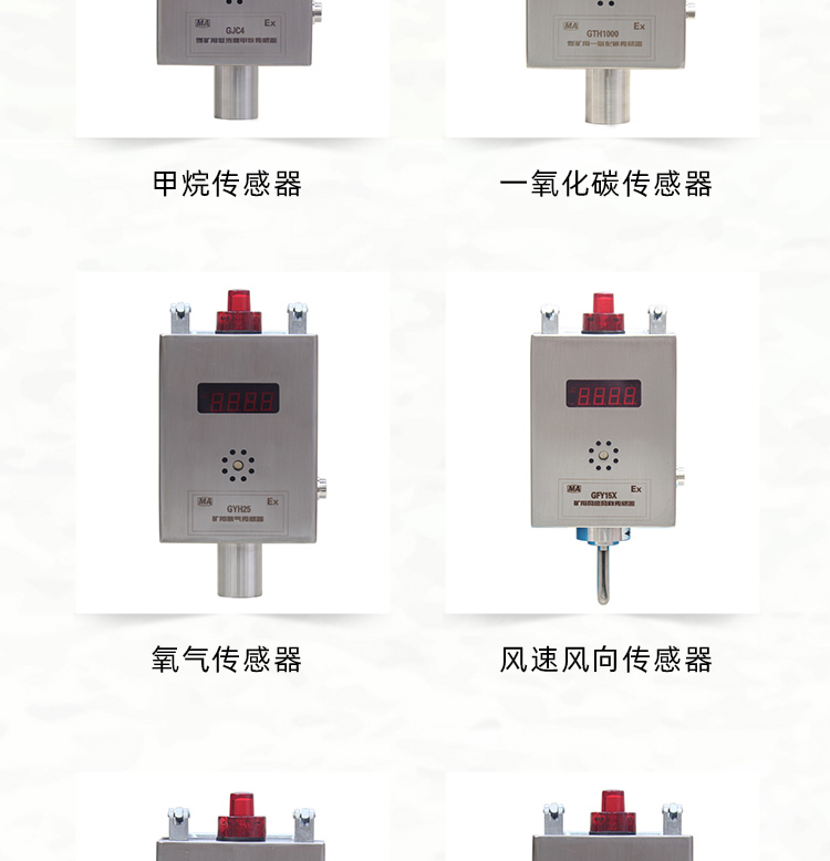 传感器类型 | 甲烷传感器、氧化碳传感器、氧气传感器等 | ||