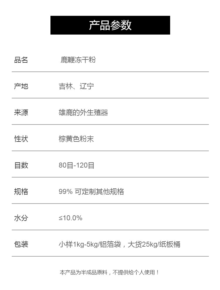 产品名称 | 鹿鞭冻干粉 | ||