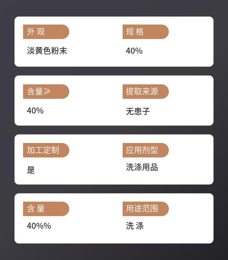 产品名称 | 专业厂家生产 无患子提取物 脱色无患子皂甙70 | ||