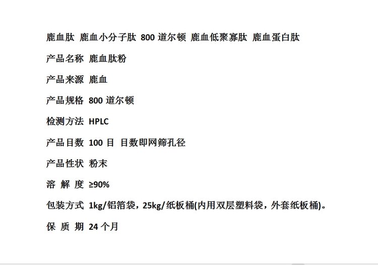 包装规格 | 25公斤/纸板桶,桶内双层无菌袋 | ||