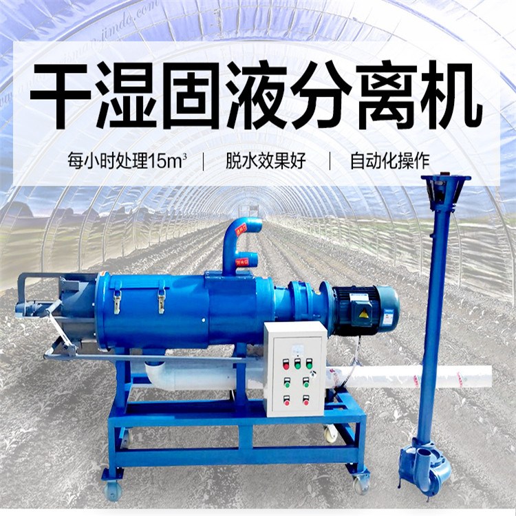 粪便脱水机是用泥浆泵将原粪水送至主机内,通过安置在筛网中的螺旋轴,主电动机带动减速机,从而使螺旋轴旋转,挤压分离出固态物质,液体则通过筛网从机体下部的出液口流出。随着原粪水的不断进入主机,从而实现批量生产;经脱水分离的干粪便近乎无臭味,粘性小可作为肥料使用;经脱水分离的干粪便拌入草糠充分搅;加入菌种:发酵,造粒可制成复合有机肥;同时可制成颗粒饲料,为鱼儿肥料;供花卉/特种经济作物施肥,能改造土壤的有机质;出售有机肥料可获得额外的经济效益