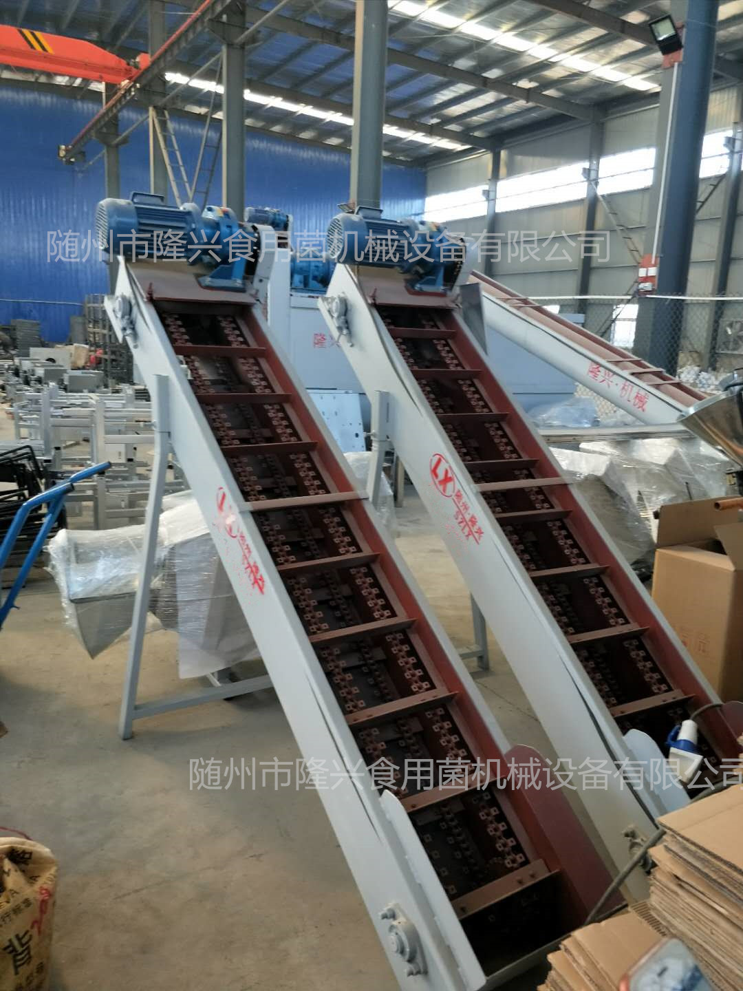 隆兴刮板上料机可搭配装袋机使用,实现菌料传输的机械化操作,减少人工人力,尺寸可订制,了解产品图片及视频详情请咨询13774102336/13886859997,微信同号!刮板上料机还可搭配生产线使用!