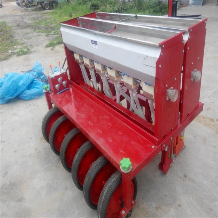 机器功能:本机器具有其他机器没有的精播器,可调种子的株距(1米内可以调1-6株)还可调节下种量1-6粒随意控制,可以适应不同的农作物种植方式。如:花生 大豆 红豆 绿豆 玉米 谷子 水稻 棉花籽 豌豆等颗粒状物料不同控制下种量、株距等达到各种粮食的播种需求!