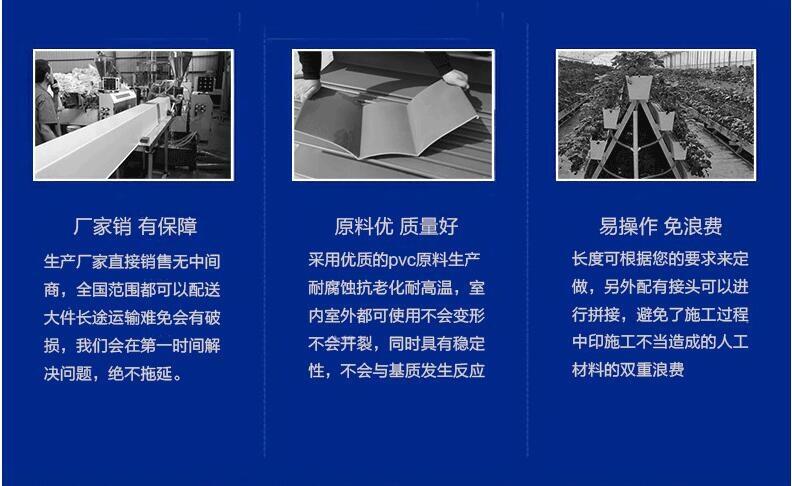 建立温室大棚用的卡槽卡簧连接片大棚卡槽使用时要注意哪些疑问一、为了方便大棚的通风换气等作业,大棚顶膜与裙膜不能掩盖在一起,需求分开掩盖,一般选用三幅式覆膜,即一幅顶棚膜和左右两头两幅裙膜。顶棚膜宽7.5~8.0米,裙膜宽1.2米。先将两侧的裙膜装上,用大棚卡槽卡住,再将顶膜盖上,两头用大棚卡槽卡牢,每个拱架之间用大棚压膜线(带)压住,在顶膜与裙膜交接处要堆叠20~30厘米,将顶膜压在裙膜外侧,顶膜的两侧可装上摇膜杆,便于撩开顶膜通风换气。裙膜着地有些要用泥土封压。大棚掩盖时应挑选无风天气进行,避免风吹不利盖膜或撕坏棚膜,盖后压好大棚压膜线。二、大棚放风通气时,先将顶膜边向上撩起,温度再增加时,再将裙膜放下。盖膜时先将裙膜夹好或系紧,再放下顶膜。撩膜盖膜按相反次序进行。三、大棚建好后在大棚附近开挖深沟,下降地下水位,以利于棚内蔬菜成长