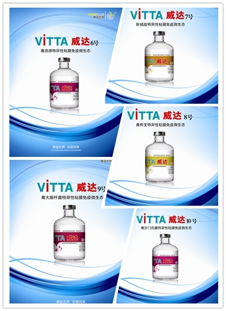 威达系列6-10号、12号产品是家禽特异性免疫微生态制剂,以新功能型乳酸菌为主要成分,安全性高,产生杭体速度快,局部粘膜免疫与全身免疫反应相结合,有效提高抗体效价,减少疫苗次数,减少免疫应激,降低免疫负担,保护鸡群健康。产品系列根据家禽多发疾病类别,分为禽流感特异性免疫微生态、新城疫特异性免疫微生态、禽传支特异性免疫微生态、禽大肠杆菌特异性免疫微生态、禽沙门氏菌特异性免疫微生态、禽球虫特异性免疫微生态。