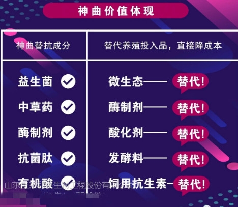 (1)现代生物科技工程:“神曲”是宝来利来生物产业集团运用全球技术领先的动物微生态研发成果,精心研制的中国***新一代发酵饲料技术,综合运用了营养微生态、免疫微生态、抗感染微生态和传统中药的现代发酵工程等四项技术,具有抗感染、免疫、替抗的功能性定位。
