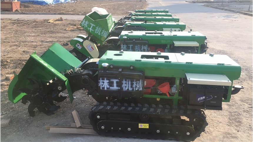 多功能 履带式开沟施肥机安装上不同的配件可以进行单独旋耕、回填、单独开沟、施肥、也可混合搭配使用。产品结实耐用,性能优越,操作方便.耐用:机身加厚,密,履带式行走,可进行原地转向。刀具都是加厚75号猛钢锻造,非常耐磨耐用,工作效率高.