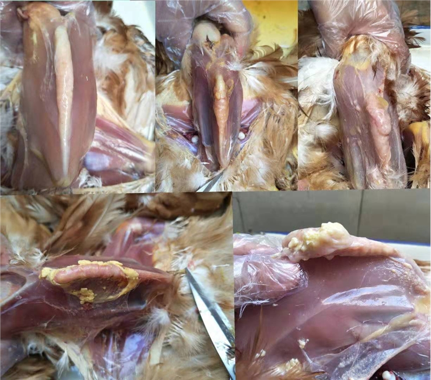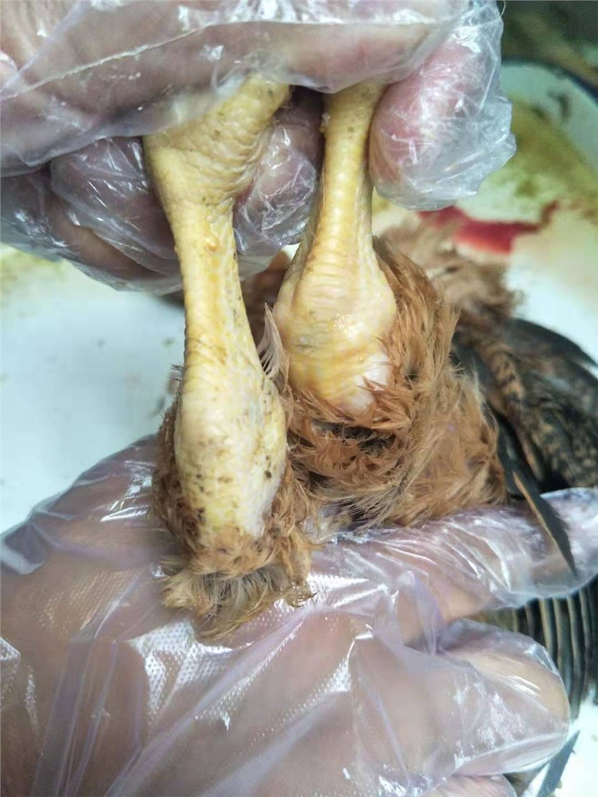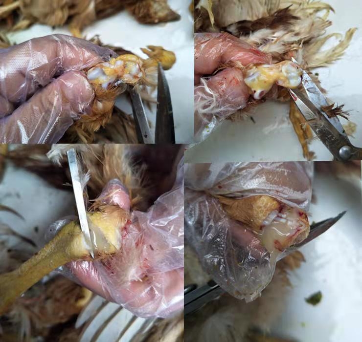 2018年6月23日,河北秦皇岛客户李老板打来电话,咨询鸡得了滑膜炎该怎么办。从客户的描述中得知养殖户这批鸡7000只,80天。现在已挑出来将近1000只瘦鸡,关节肿胀,精神不好的瘫鸡。李老板说这批鸡30多天发现有精神不好的,瘫那里不动的,挑出来20多只之后,隔了3天又挑出40多只。找来当地技术员剖检症状是,关节处有黄色粘液,胸骨囊肿,确诊是滑膜炎支原体,取了一个星期的泰乐菌素和多西环素,用了几天发现鸡还是精神不振,药用完之后停了3天。大群又挑出100多只。无耐又找另一个技术员处取药,技术员建议大群打针,林可大观霉素和恩诺沙星。打了三天之后,精神好转。50多天大上笼之后,又出现蔫鸡。技术员又建议用泰妙菌素和多西环素。用了五天之后,防疫时,又挑出来400多只,李老板简直是欲哭无泪,不想在管了,任由它去吧。眼看鸡一天天的大起来,吃料越来越多,瘦鸡也越来越多。抱着最后一丝希望在网上查查鸡得了滑膜炎该怎么办?用什么药能治好,搜到了阳光禽业技术部。