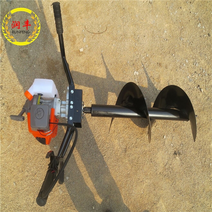 冰钻使用特点:1.该冰钻由小型通用汽油机,超越离合器,高减速传动箱及特殊设计的钻具组成.适合在土地,冻土,冰层上打孔.广泛用于园林,种植,植树,物探,道路建设等领域.?2.变速器齿轮采用纯紫铜制作大大提高了扭矩力增强了耐磨性。3.钻杆采用双刀片焊接加强了挖坑效果,出土率达到90%。配备定心钻头。?4.钻头采用锰钢合成更加的坚硬。对硬土质,粘土,冻土等都能对它很有效的实施工作,并能达到佳工作要求。钓鱼爱好者爱的钻眼钓鱼设备冰上钓鱼好帮手。?5.该地钻可根据树种,选配多种规格的钻头,以满足用户需要。使用地钻的效率是人工的数十倍,操作每小时不低于80个坑,按一天工作8小时计算,一天可以挖640个坑,是人工的30多倍。?6.具有体积小、重量轻、操作方便、维护简单、耗油省、噪音低、易启动、成孔效率高、运行费用低、价格便宜等特点,该地钻设计新颖、灵活、合理,性能稳定,作业效果好、效率高,深受广大用户欢迎。?7.地钻能够让人们从繁重的体力劳动解放出来,广泛应用于植树造林,栽种果林、篱笆、及秋季给果树施肥等。该地钻动力强劲有力,外形美观,操作舒适,劳动强度低,适合各种地形,效率高,便于携带及野外田地作业。?8.这款地钻既适合单人操作,又可双人操作,经济实用 公司方:山东省曲阜市润丰机械公司