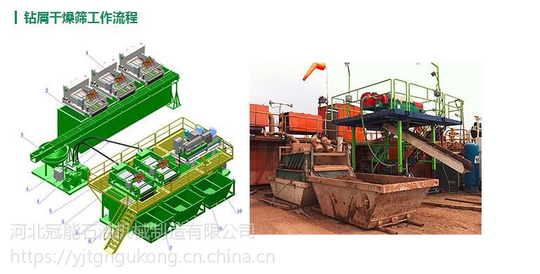 1)将螺旋输送机安装于钻机固控振动筛之下,通过螺旋输送机或冠能钻屑输送设备将钻屑输送给冠能钻屑干燥筛进行处理。