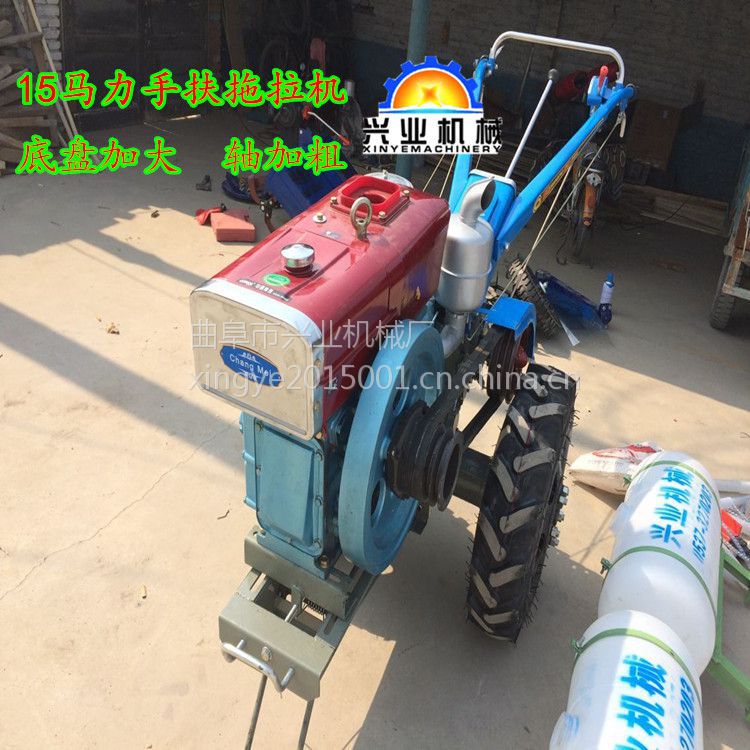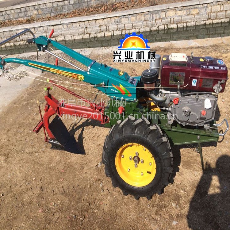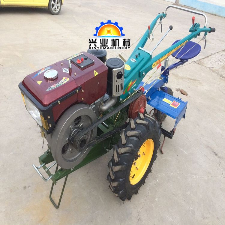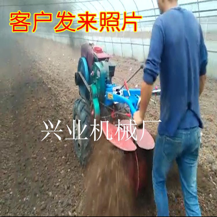 有利于争取农时,提高工效,并能充分利用拖拉机的功率。但对残茬、杂草的覆盖能力较差,耕深较浅(旱耕12~16厘米;水耕14~18厘米),能量消耗较大。主要用于水稻田和蔬菜地,也用于果园中耕。重型横轴式旋耕机的耕深可达20~25厘米,多用于开垦灌木地、沼泽地和草荒地的耕作。工作部件(见图)包括旋耕刀辊和按多头螺线均匀配置的若干把切土刀片,由拖拉机动力输出轴通过传动装置驱动,常用转速为190~280转/分。刀辊的旋转方向通常与拖拉机轮子转动的方向一致!11马力柴油带动马力大旋耕碎土效果好!出厂价不含物流运费!