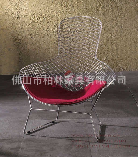 休闲铁线椅子也叫钻石钢丝椅,是哈里伯托埃(harry bertoia,1915-1978年)意大利艺术家及家具设计师于1951年设计的,带有艺术风格趋向于流线型,结构简约,现代、时尚。椅子材料采用高品质不锈钢和进口意大利皮,主要依靠手工制作。休闲铁线椅子/钻石钢丝椅(wire bar chair)主要用于酒店、别墅、会所、高档办公及样板房,是追求现代、时尚、舒适生活的经典家具。