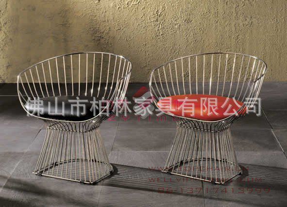 休闲铁线椅子也叫钻石钢丝椅,是哈里伯托埃(harry bertoia,1915-1978年)意大利艺术家及家具设计师于1951年设计的,带有艺术风格趋向于流线型,结构简约,现代、时尚。椅子材料采用高品质不锈钢和进口意大利皮,主要依靠手工制作。休闲铁线椅子/钻石钢丝椅(wire bar chair)主要用于酒店、别墅、会所、高档办公及样板房,是追求现代、时尚、舒适生活的经典家具。
