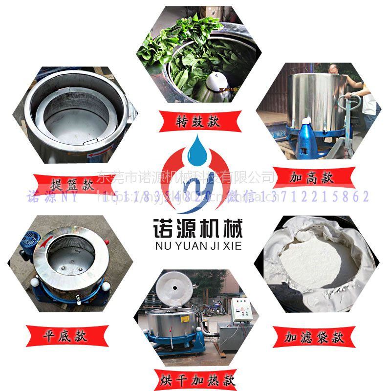诺源离心式不锈钢脱水机的脱水系统:由脱水桶、脱水外桶(双连桶)、底座、轴承座组成。脱水外桶(双连桶)呈园型,固定不动。脱水桶呈圆形,,三足弹簧减震,脱水机主要部件是内胆,内胆四周布有小孔,工作时,待脱水的物料就放在内胆中,