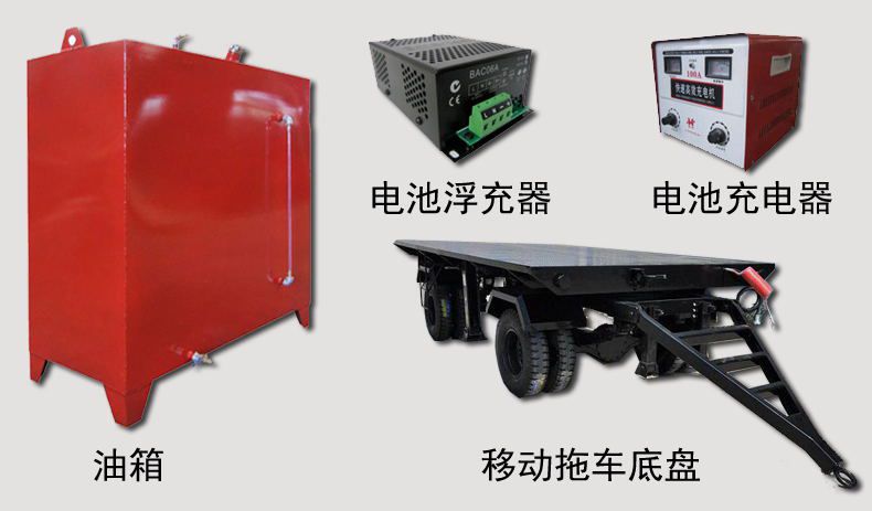 1:随机附件:随机资料、随机工具、启动蓄电池及连接线一套;排烟弯管、高效消音器一套;底座减震器一套。(详见附件配置清单!)