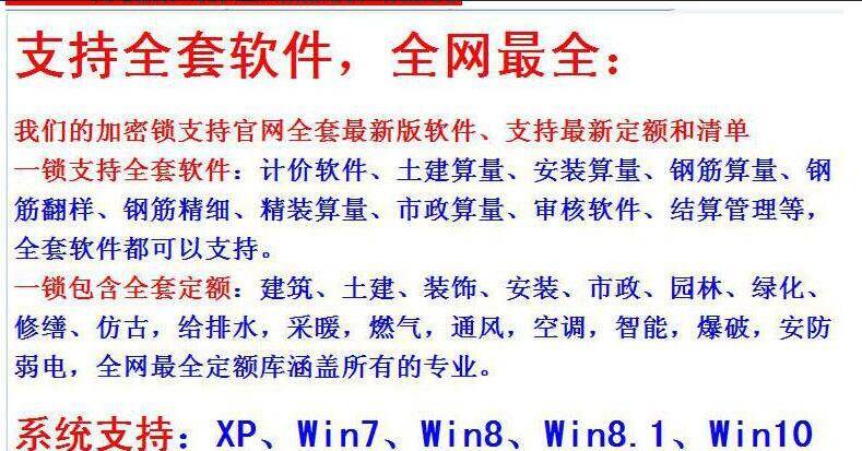 计价软件、图形算量、土建算量、安装算量、钢筋算量、钢筋翻样、钢筋精细管理、精装修算量、审核软件、结算管理等,全套软件只需一把锁全部搞定