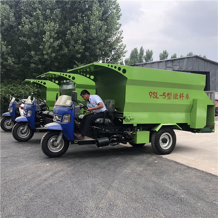 饲料撒料车的吊具采用三轮车动力和低能耗