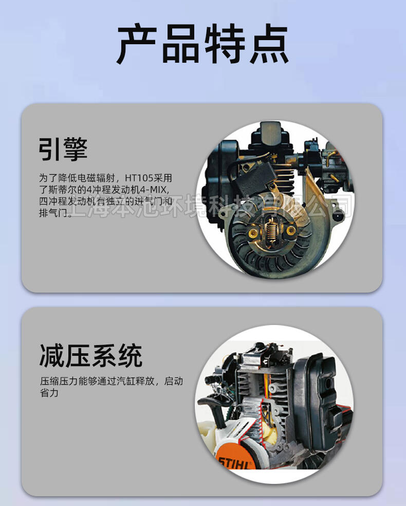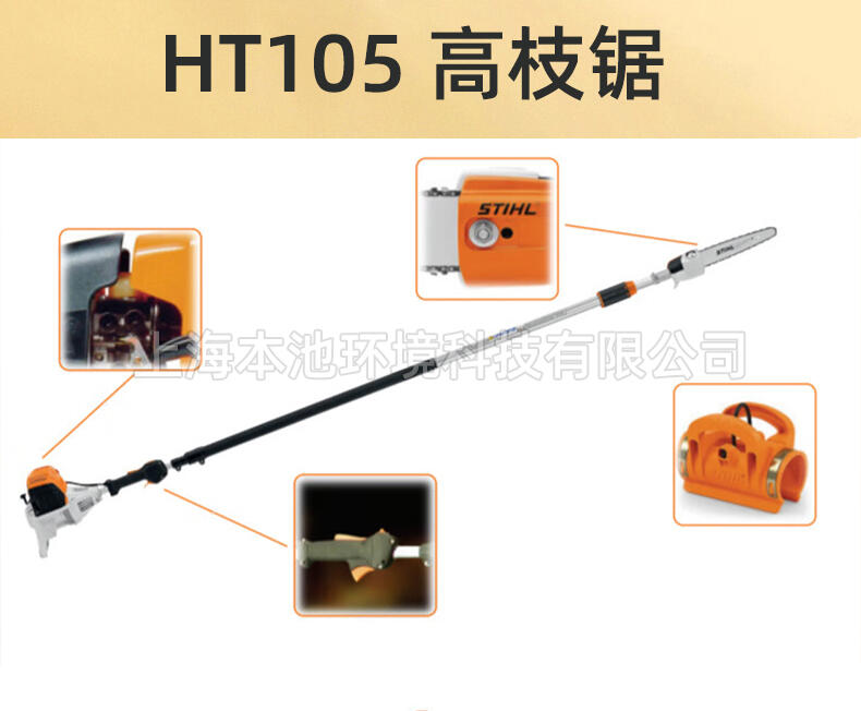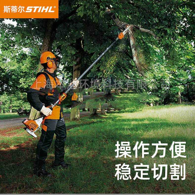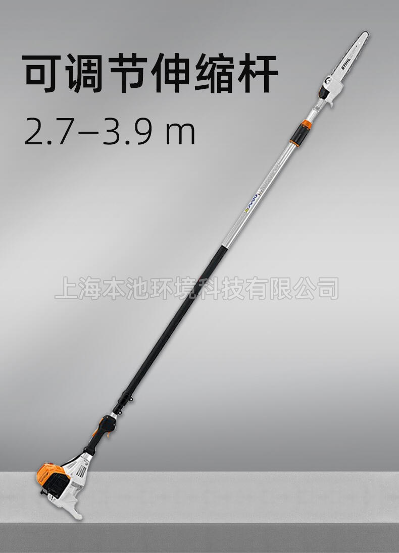 STIHL斯蒂尔高枝锯,HT105可伸缩高空剪枝锯。伸缩长度2.7m-3.9m。切割长度可达30cm。1.05KW大功率。用于高大树木修枝。轻松便携,快速切割,省时省力。适用于多种场合:公园绿化.庭院修剪.户外修枝等多种场合。