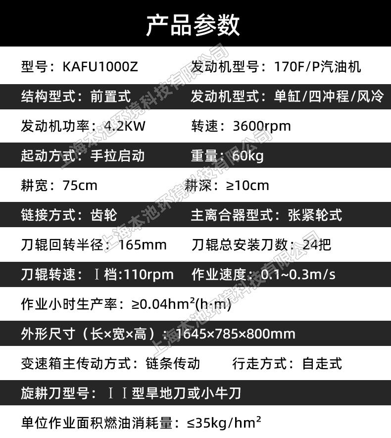 单位作业面积燃油消耗量:≥35kg/hm2