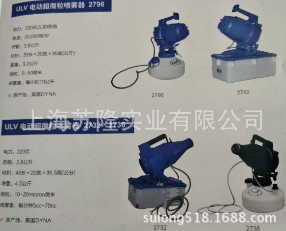 技术参数: 可调节流率 0-4公升/小时 雾粒 5-20微米 容量 1加仑(3.8公升) 长*宽*高 45.4*20.2*36.5厘米 空重 4.25公斤 输入电源 220伏,4.2安培,50/60赫兹材质:用密度聚乙烯工业塑料制成 耐酸碱 可喷过氧乙酸 电机转速2万转/分钟美国丹拿2732电动超微粒雾化喷雾器,丹拿2736超低容量喷雾器