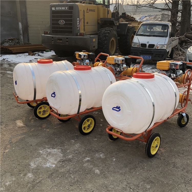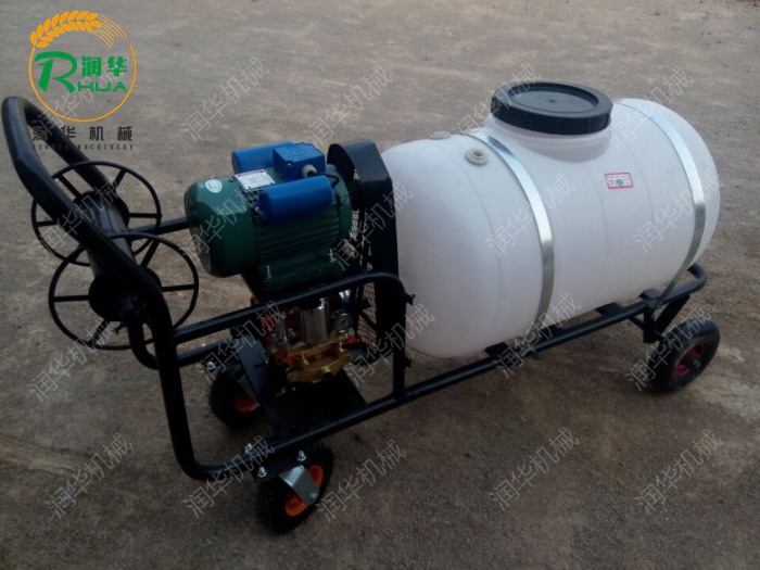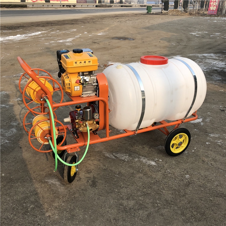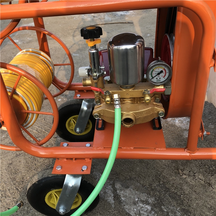 手推式四轮喷雾打药机,牧草打药机 园林喷雾器 手推式动力喷雾器,又称为四冲程喷雾机,属于高压喷雾器系列。以汽油机为动力,高压柱塞泵为工作源,应用喷枪喷雾高度可以达到垂直喷雾25米左右。如果需要更高喷雾,可延长高压胶管绑在长杆上工作。