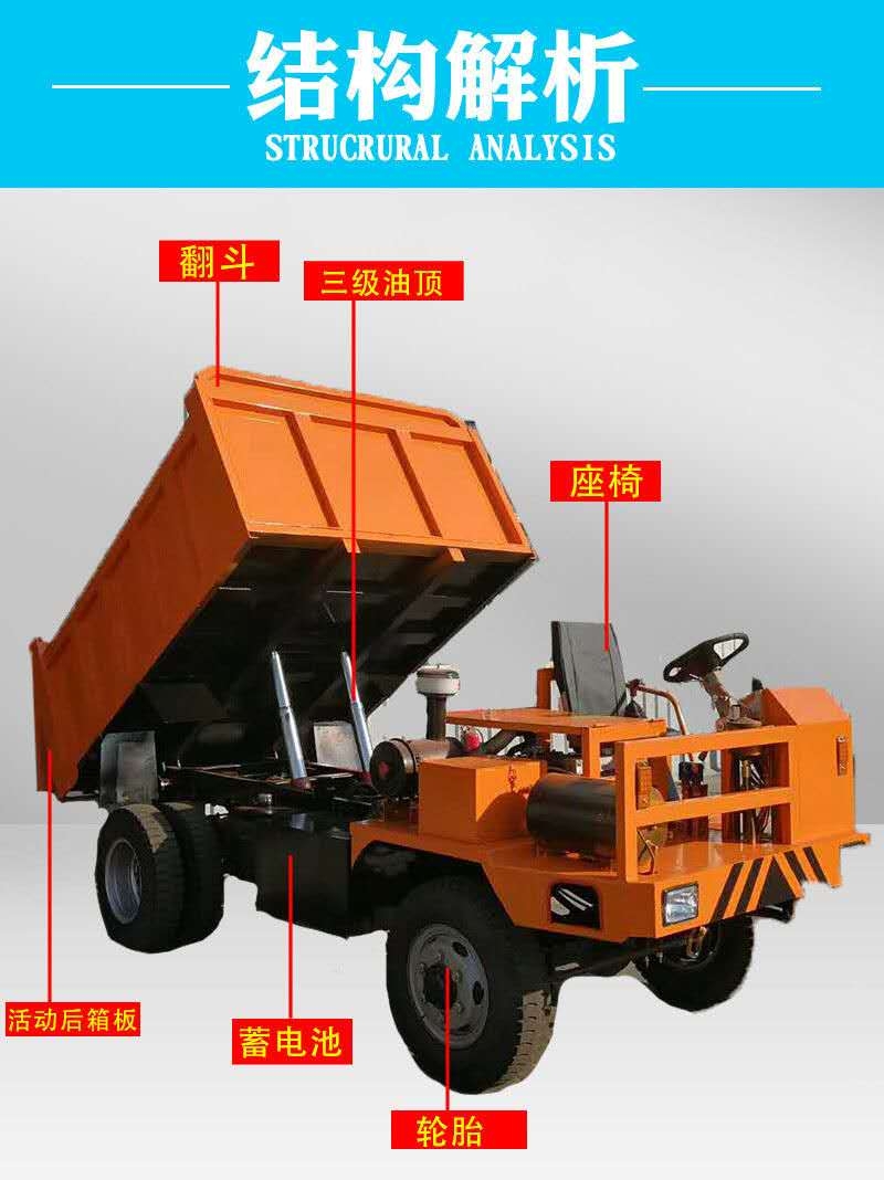 车厢利用自身重力和液压控制复位。我公司常年定制各种四不像车履带车工程车农矿用四不像车,欢迎各界人士莅临参观洽谈!我公司工作人员为您总结了一些矿用四不像车在使用时的技术要求,众所周知其具有良好的使用性能,在各种艰难的环境下都能使用,可以称为是“致富小帮手”。发动机和底盘的构造方式与普通重型卡车相同。四不像车液压倾翻机构由油罐、液压泵、配流阀、升降液压缸、控制阀和油管组成。可防止热源对产生不良影响。底盘上装有两条拖地导静电胶带,配置手提灭火器等安全装置。整车全方面调试,检查电气控制线路有无故障隐患,如有应就地排除;调整前后刹车,保障刹车灵活可靠;矿用四不像车转向是否可靠,是否存在车把与前叉产生相互滑动的现象;