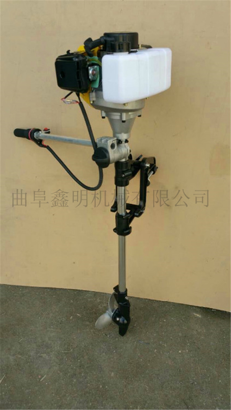 汽油式船外机将燃油的化学通过内燃机化为机械能,然后通过机械转动、螺旋桨换为船艇前进的动力。