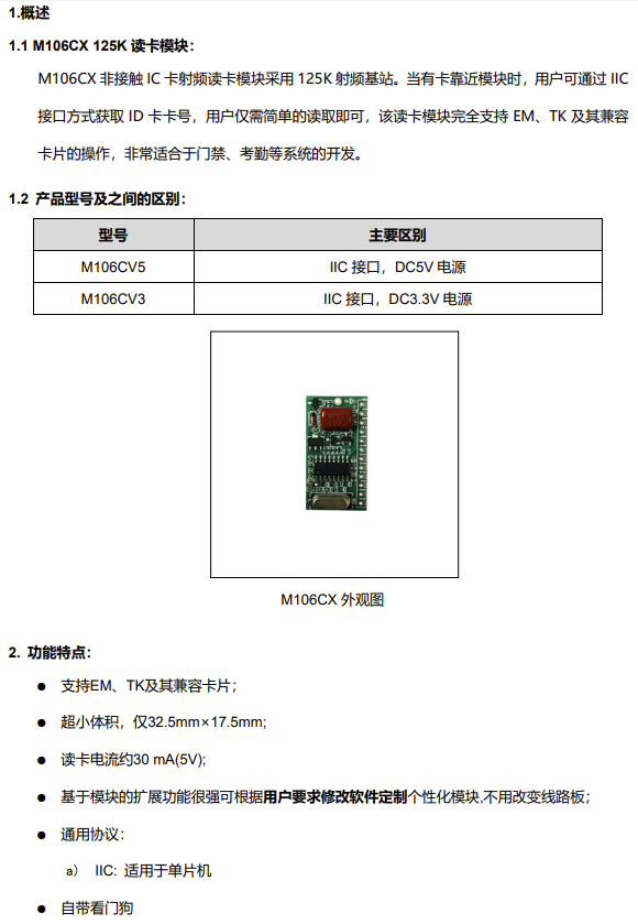 支持卡片 | EM、TK及其125K兼容ID卡片 | ||