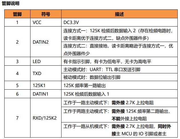 支持125K ID卡:EM4001/TK4001/EM4100/TK4100及其兼容卡片