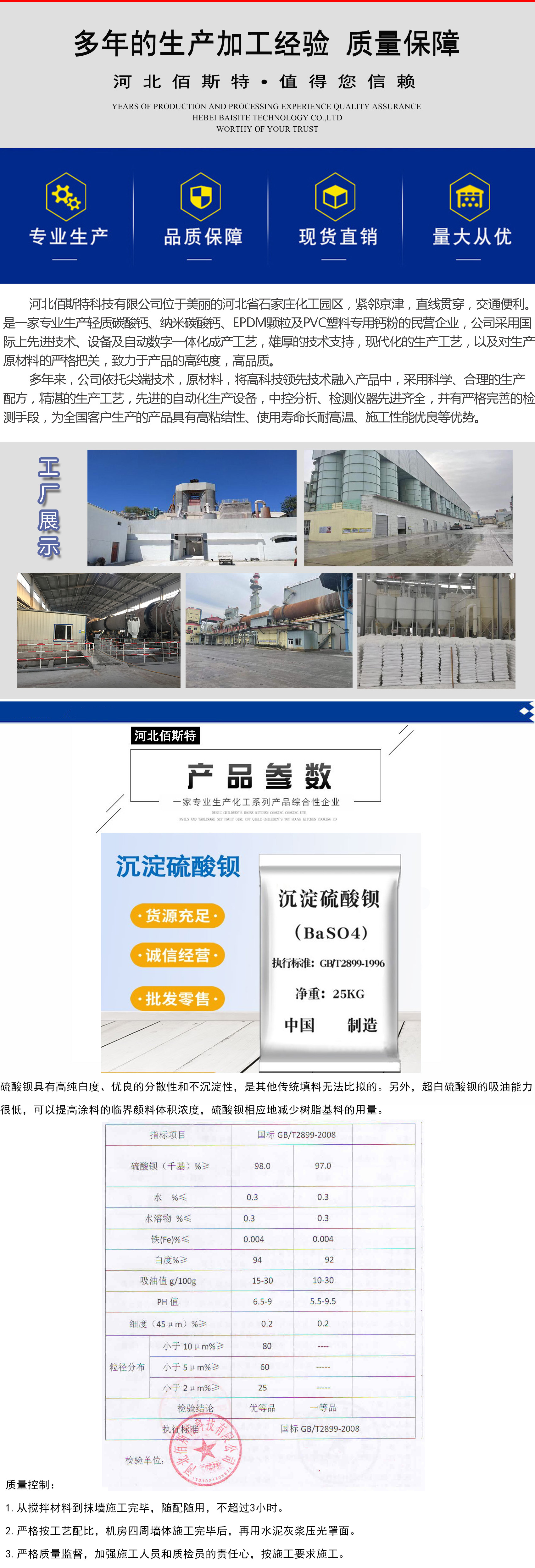 佰斯特沉淀硫酸钡颗粒分布均匀用于工业油漆涂料橡胶塑料PVC
